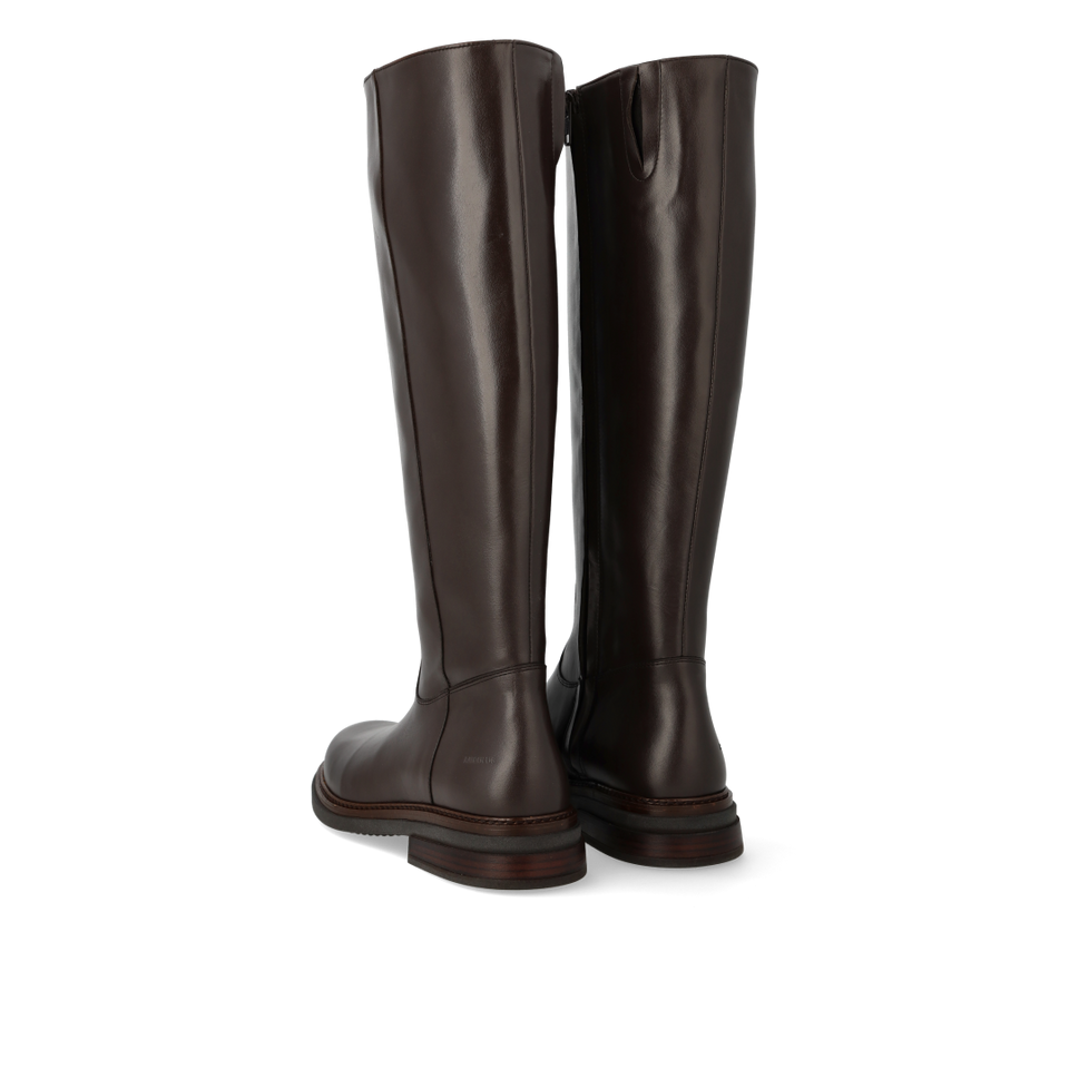 Angulus Langskaftet Støvle i Brunt Læder har en rund snude, vatteret indersål, kromfrit læderfoer, præget logo på støvlens ene side, tætsiddende skaft med lynlåslukning. Designet i Danmark og håndlavet med kærlighed i Portugal.