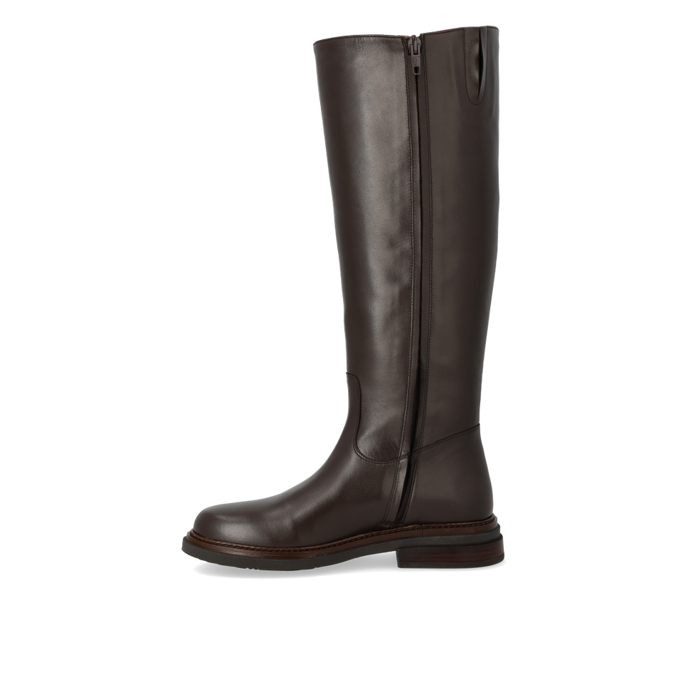 Angulus Langskaftet Støvle i Brunt Læder har en rund snude, vatteret indersål, kromfrit læderfoer, præget logo på støvlens ene side, tætsiddende skaft med lynlåslukning og en en let og fleksibel gummisål med dekorativ stikningsrand. Udformet i naturligt og åndbart skind. Designet i Danmark og håndlavet med kærlighed i Portugal.