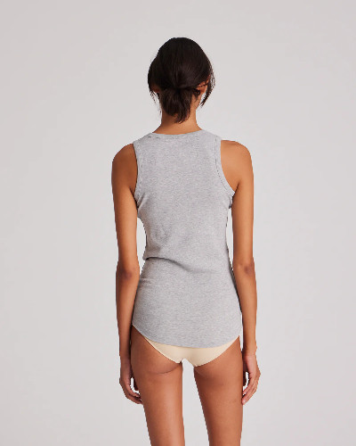 Alberte er en let ribbet tanktop, som er lavet af 100% økologisk bomuld. Toppen har rund halsudskæring og en tætsiddende pasform.