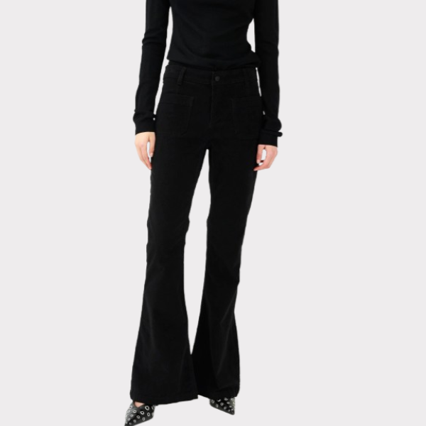 Ivy Ann Charlotte Jeans Baby Cord er moderne vintage. Med en mellemhøj talje, tætsiddende hofte og babyfløjl, der giver benlængden visuelt længde, samtidig med at give en flot silhouet.