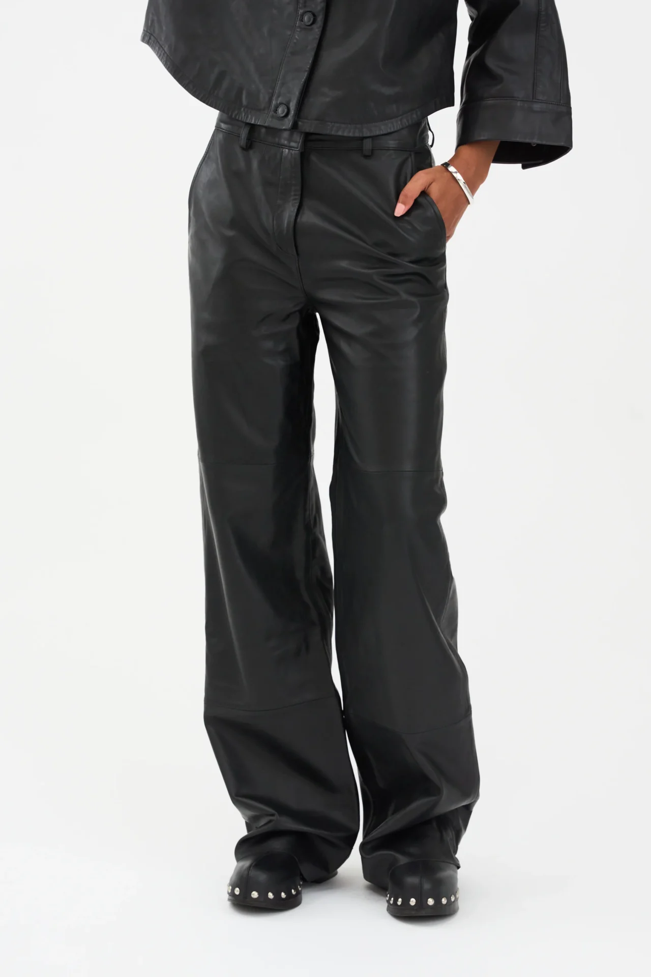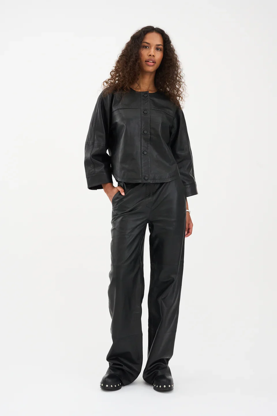 En version med kant ud af en klassisk form. Ivy Augusta French Leather Pant er fremstillet af smørblødt lammeskind med en moderne, bred, lige ben-silhuet. Designet til at sidde højt i taljen og skaber en balance mellem ubesværet coolhed og forhøjet elegance. De syede knæpaneler og den minimalistiske finish giver bukserne en moderne kant, der fungerer både dag og nat.