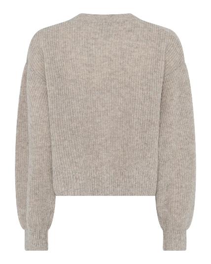 Fås i farverne Sand Melange og Brown Melange – varme, naturlige nuancer, der understreger cardiganens tidløse karakter.