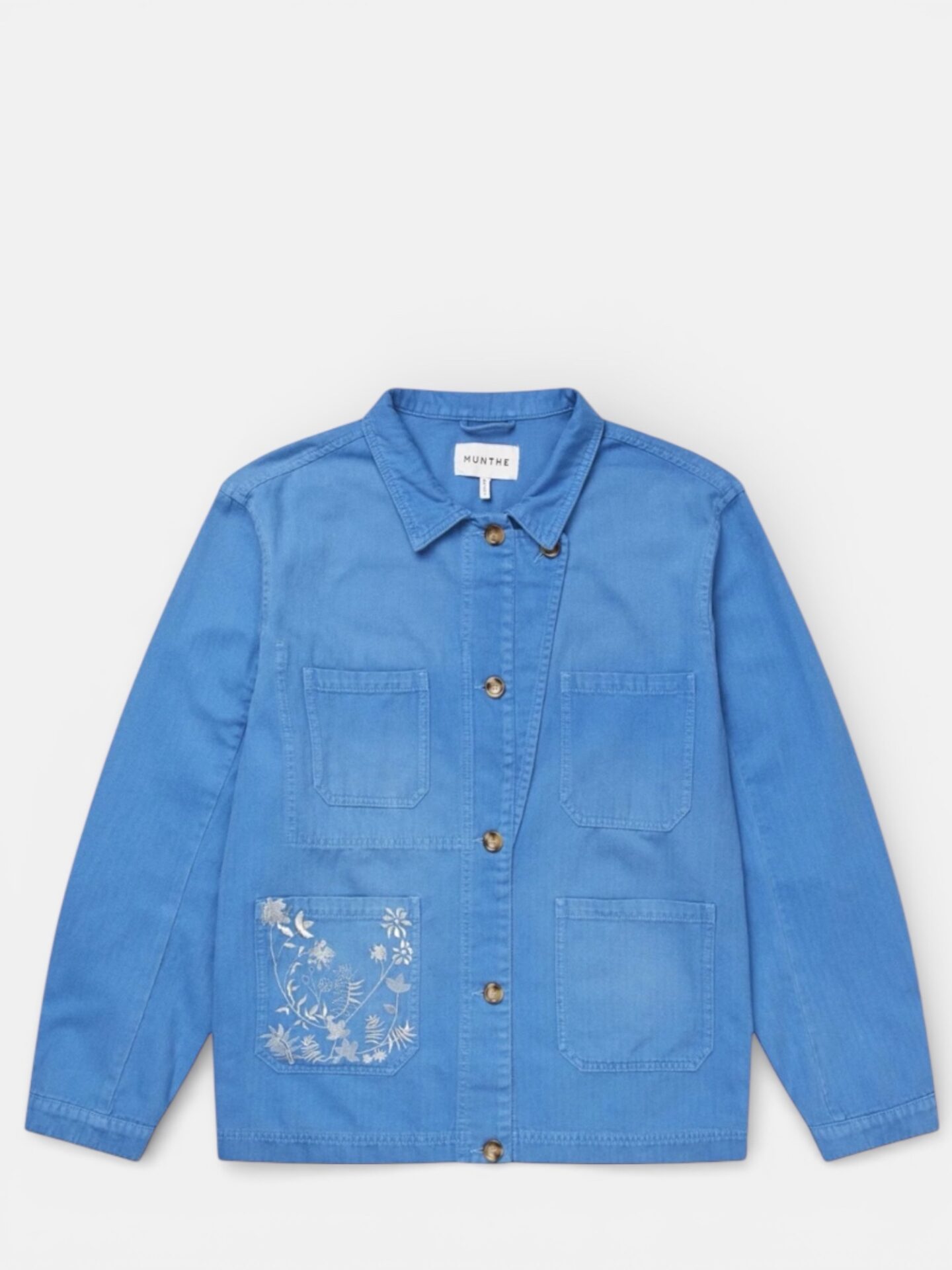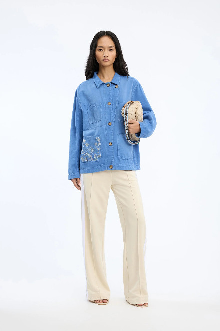 Denne jakke har fire frontlommer, en klassisk knaplukning, samt broderi i blomstermotiver på front og ryg.  Jakken er velegnet til lag på lag looks og har med sit detaljerede blomsterbroderi et kunstnerisk udtryk.