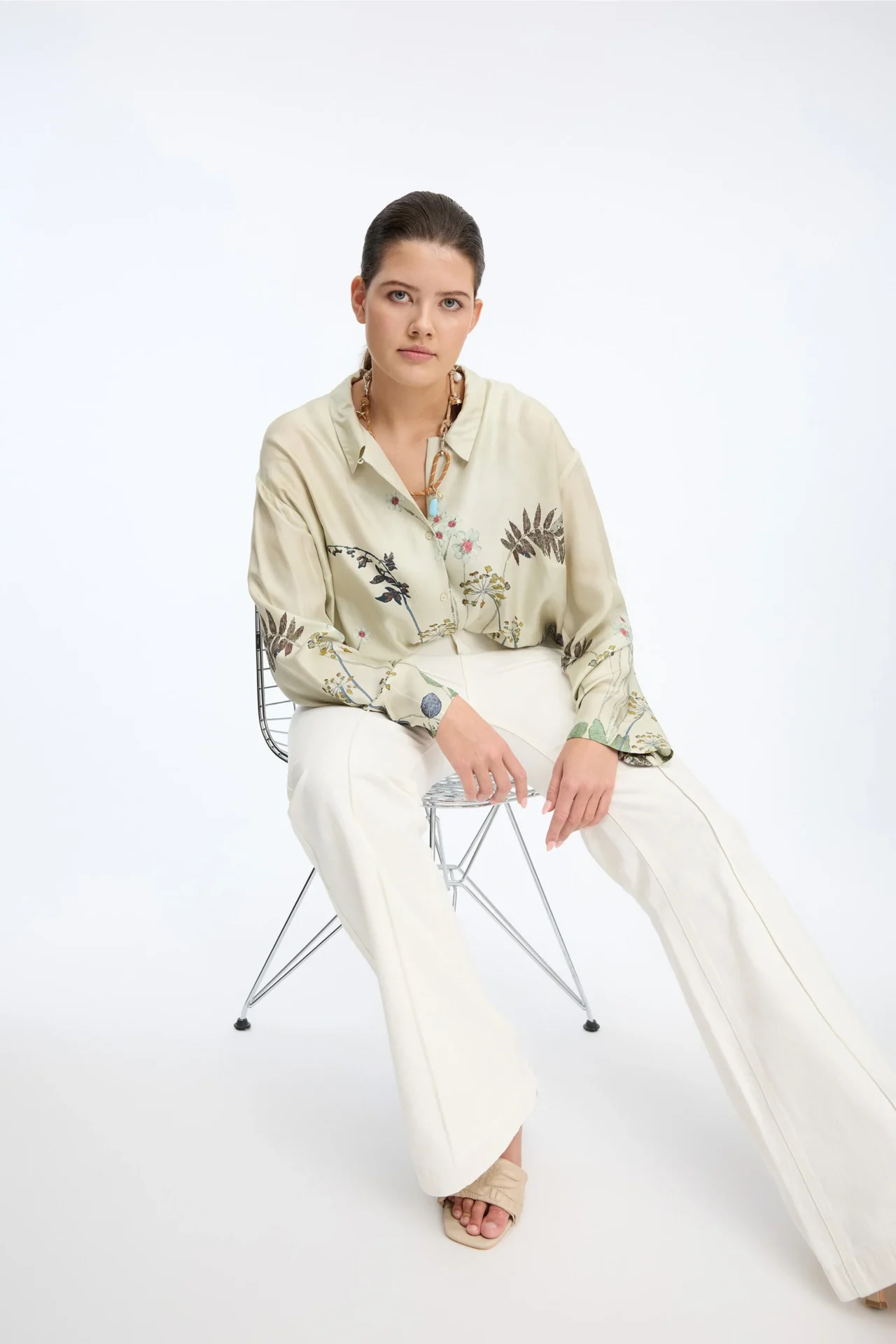 Det cremefarvede print gør selv et simpelt outfit interessant, uden at du behøver at gøre noget ekstra. Det er den slags skjorte, der gør hverdagen lidt skarpere.