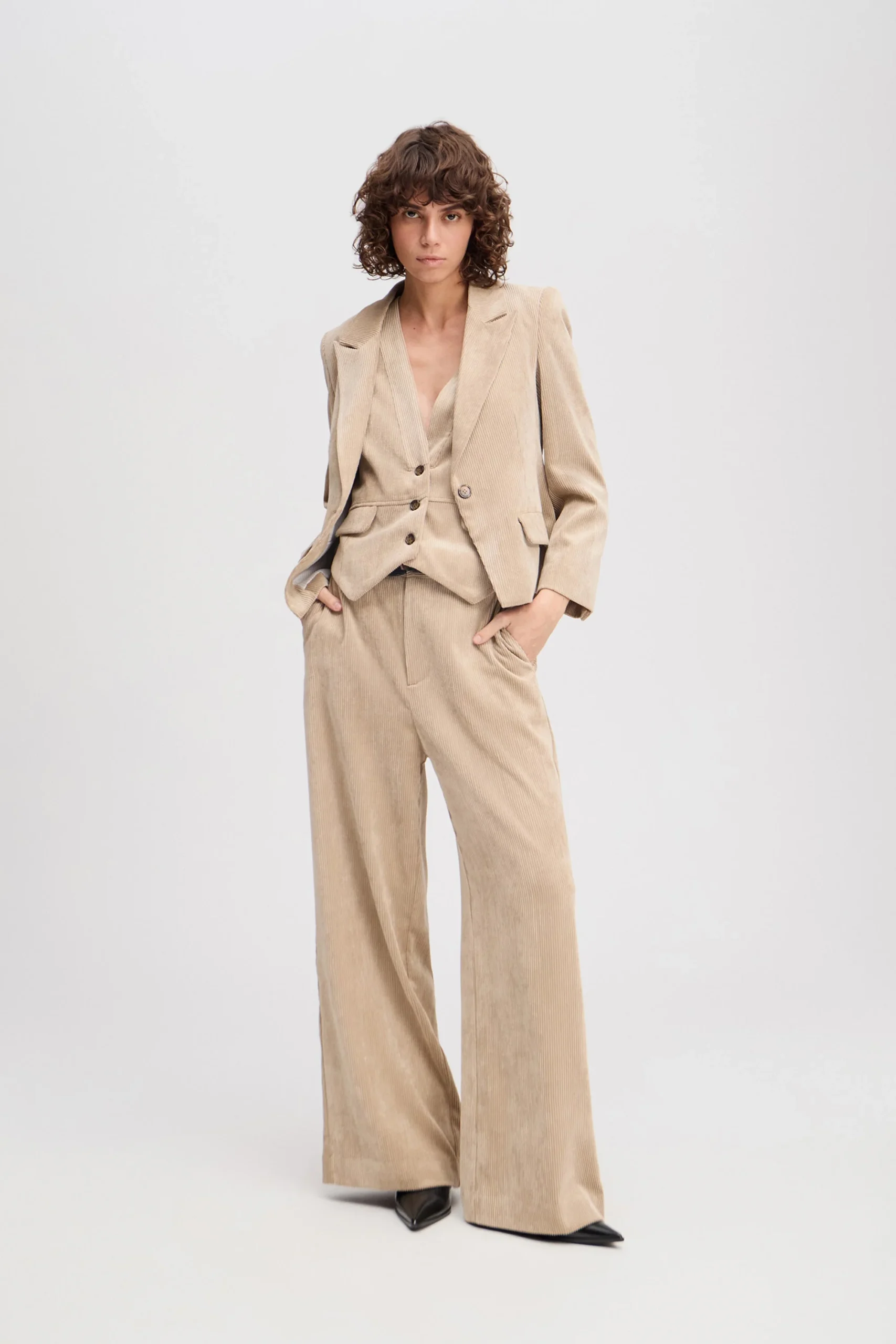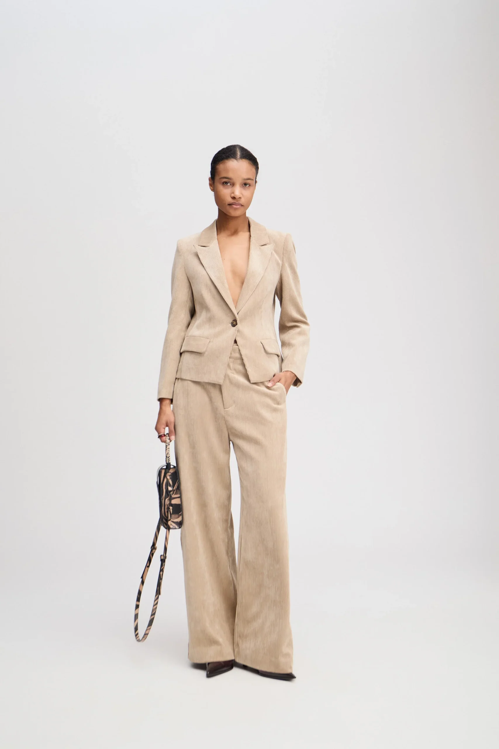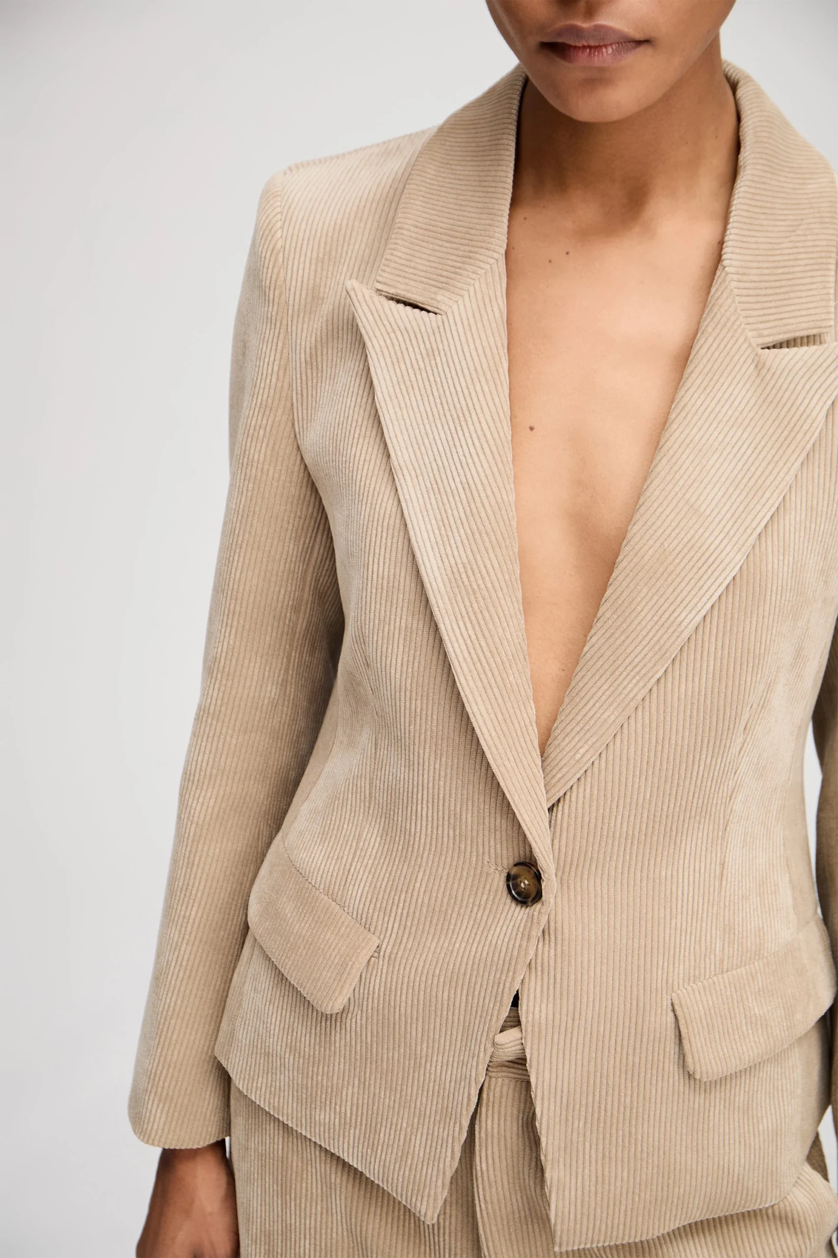 Smuk, kort fløjlsblazer med elegante klaplommer foran. Denne blazer er designet til en tæt pasform og har lige skuldre, lange ærmer og en knaplukning.