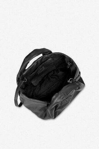 Taske i blødt læder med MUNTHE-emblem. Tasken har et rummeligt hovedrum, et lille siderum samt korte hanke og en aftagelig skulderrem. Siderne kan justeres, så tasken kan gøres større eller mindre efter behov. Tasken har en fast bund, der sikrer formstabilitet, og lukkes med magnetlukning.