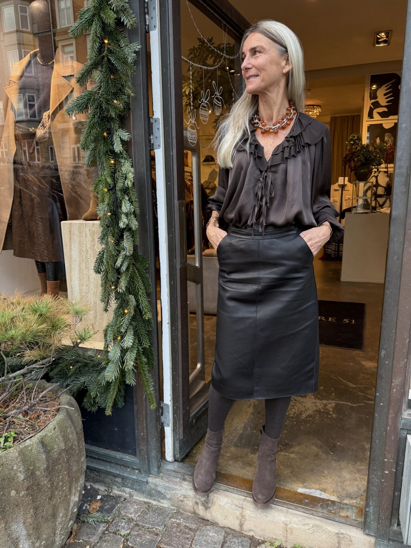 Først og fremmest: farven. “Coffee” er ikke bare brun – det er den der varme, dybe brun tone, der gør alle dine outfits ægte. Den fungerer glimrende med jeans, blazere og skræddersyede bukser, og den er især god, hvis du vil arbejde med lag-på-lag uden at det bliver for heavy. Den står smukt alene, men gør sig også ekstra god under en strik som Project AJ117 River Frill Blouse Coffee eller en af sæsonens oversize cardigans. Det betyder, at den nemt kan gå fra morgenmøde til middag med veninder uden at miste sin coolness.