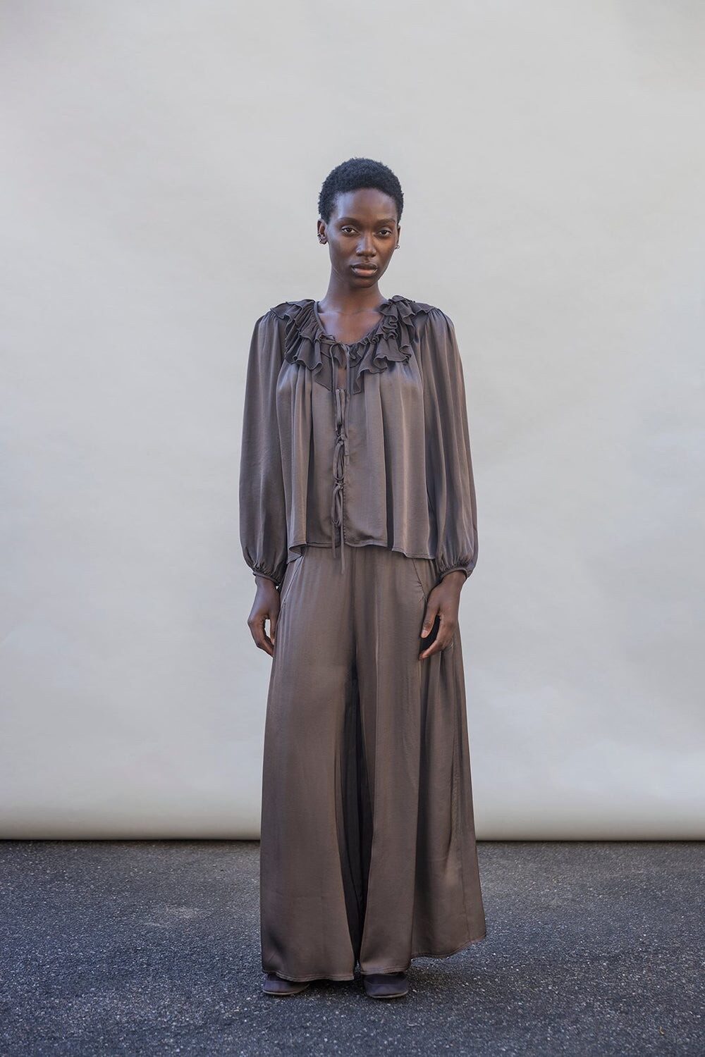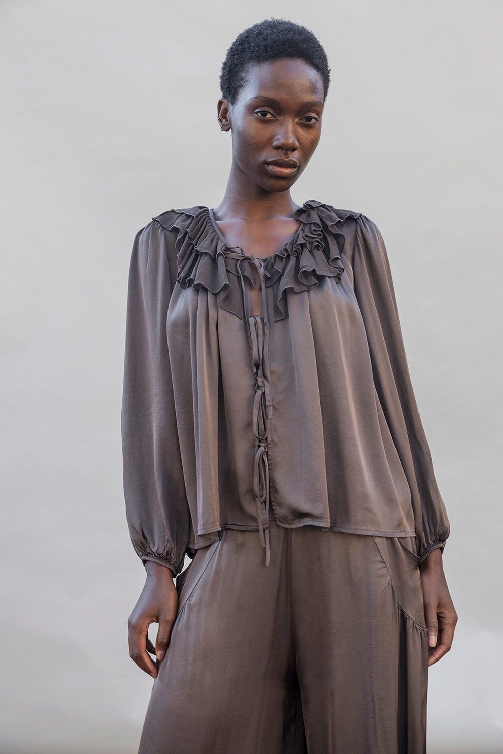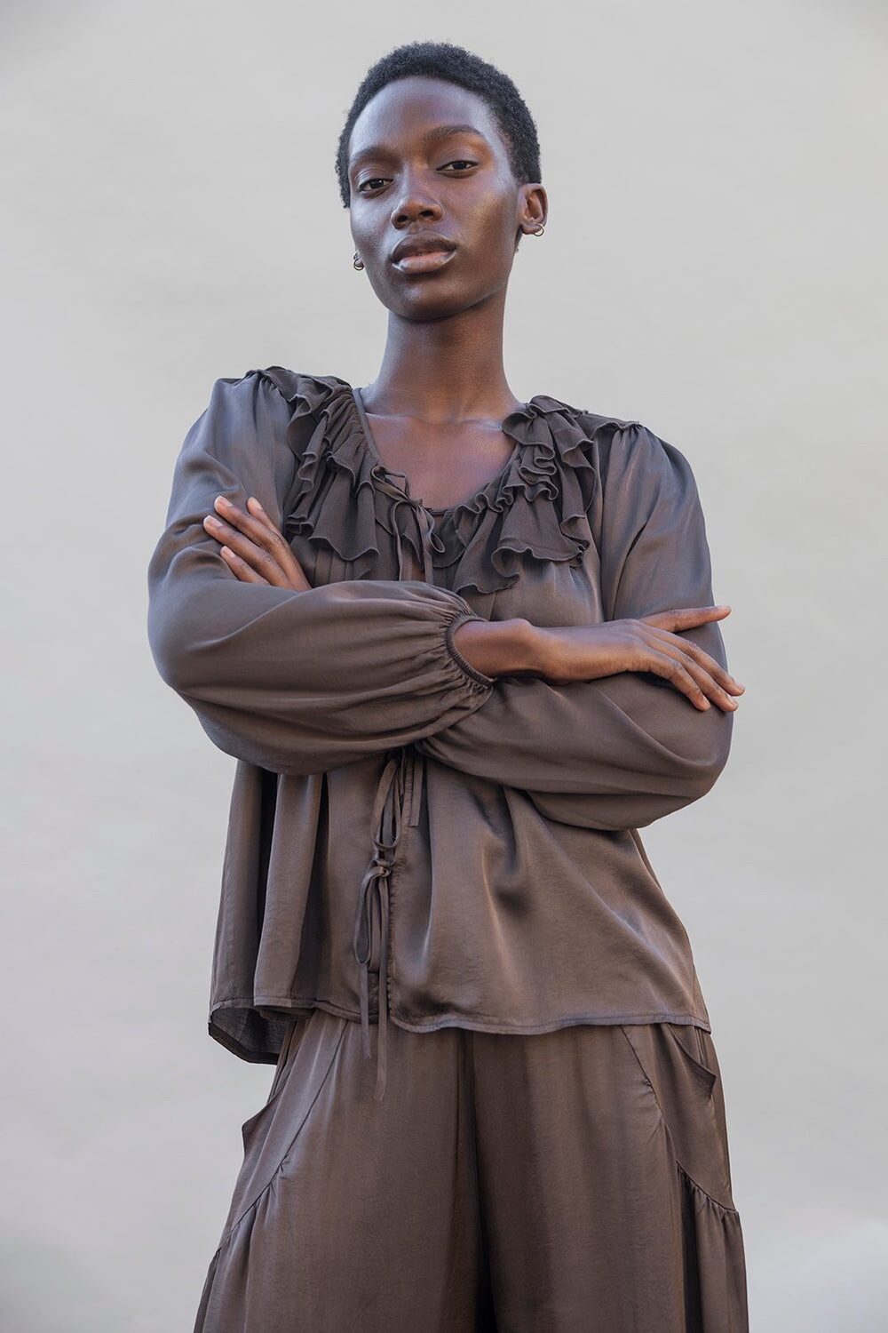 Signature Statement Piece: Project AJ117 River Frill Blouse Coffee