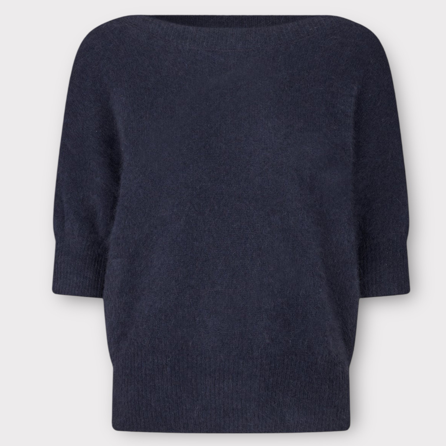 Moi er en tidløs sweater i 100% ultrablød vaskebjørneuld med en løs pasform og en elegant bådudskæring. Ærmerne går til albuerne, og ribdetaljerne ved halsudskæringen, kanten og manchetterne tilføjer en diskret struktur. Luksuriøst blød og let – den giver både varme og komfort med et ubesværet raffineret udtryk.