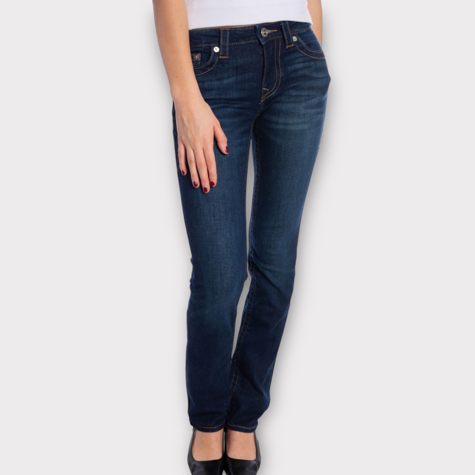 True Religion Billie Mid Rise Straight Jeans
